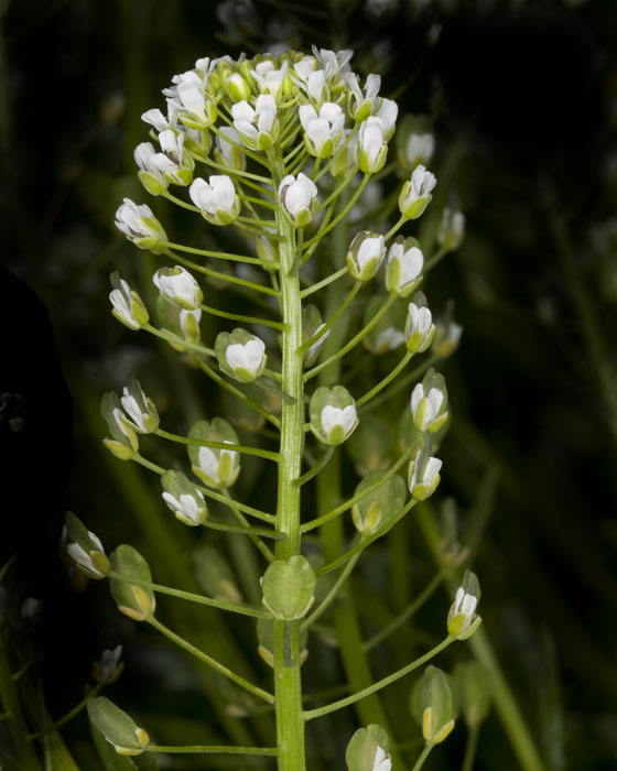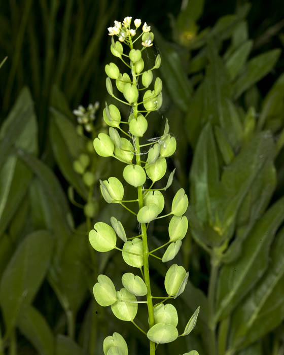 Found in meadow #1 . Considered a common weed and gives milk a bitter taste when diary cows consume it. Some medicinal uses. Named for the penny-looking seed pods. (Thlaspi arvense). More.
