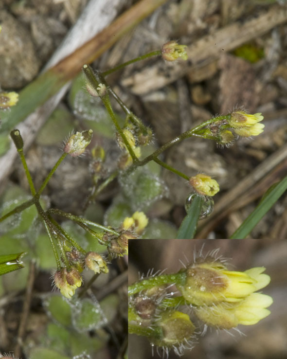 Many very tiny yellow flowers on one plant found in Meadow Vue Ranch overlooking RedRock RV Park. Inset is closeup of one of the flowers. Looks like something from the pea family, like a locoweed or milk vetch. |