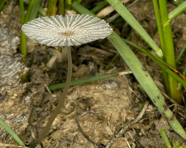 One very delicate small speciman along Henry's Lake South access road just north of the RV Park growing in a cow patty. (Coprinus plicatilis) Also called the Pleated Inky Cap/Japanese Parasol or Umbrella mushroom too. MORE |